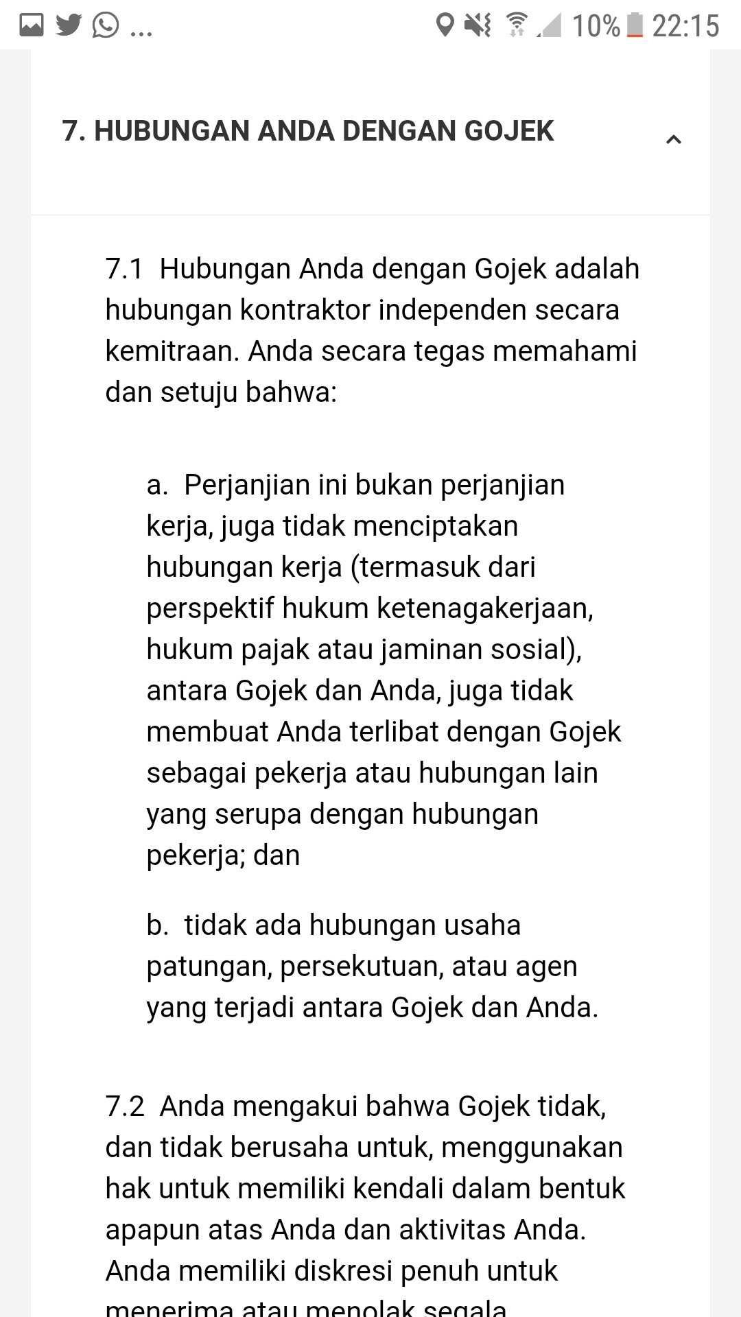 Rangga Widigda On Twitter Yang Pertama Hubungan Gojek Dengan Drivernya Secara Perjanjian Adalah Hubungan Kontraktor Independen Secara Kemitraan Gojek Disini Menegaskan Langsung Di Awal Kalo Perjanjian Mereka Dengan Driver Bukan Merupakan Perjanjian